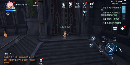 1、第一步前往卡塞尔学院坐标(214:471)准备开门,然而发现没有钥匙,因此我们得想办法找钥匙才能开门,有两种途径。