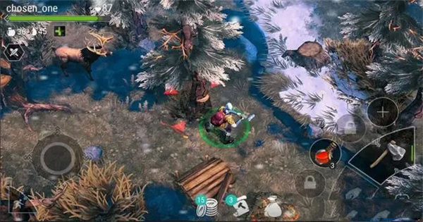 相较于求生类生存游戏,《弗里斯伯恩》更侧重于战斗玩法。尽管游戏中设有饥饿与口渴的机制,但饥饿值的消耗速度相当缓慢,食物资源更多时候是被用来在战斗中恢复生命值。