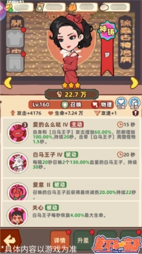 梦每隔一段时间会召唤出2个白马王子,她的被动技能能为白马王子提供减伤效果,还能让他们每秒恢复一定血量;当梦开启主动技能时,不仅会提升白马王子自身的攻击力与防御力,还会击晕其周围的敌人;和电筒西类似,梦的召唤物具备吸收敌人攻击的能力,并且由于她的主动技能可以同时增加自身与召唤物的攻击力,所以梦与白马王子也拥有一定的输出能力,大侠可依据实际需求来进行选择~