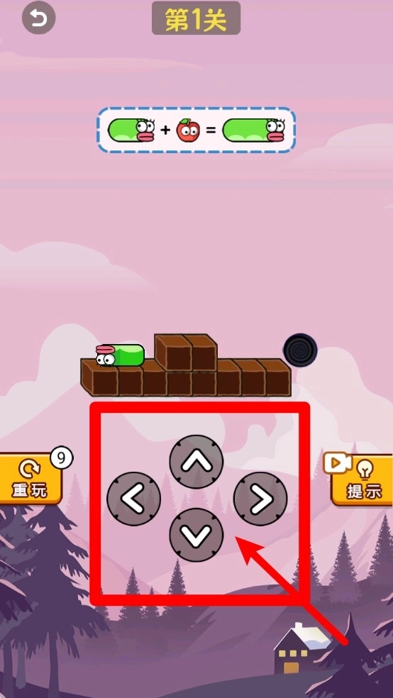 2.屏幕中间的方向键用来控制蛇身上下左右移动,需先吃够所有苹果,再前往黑色传送洞口完成通关。要留意狭窄的地形和掉头的时机,防止出现自我封堵的情况。