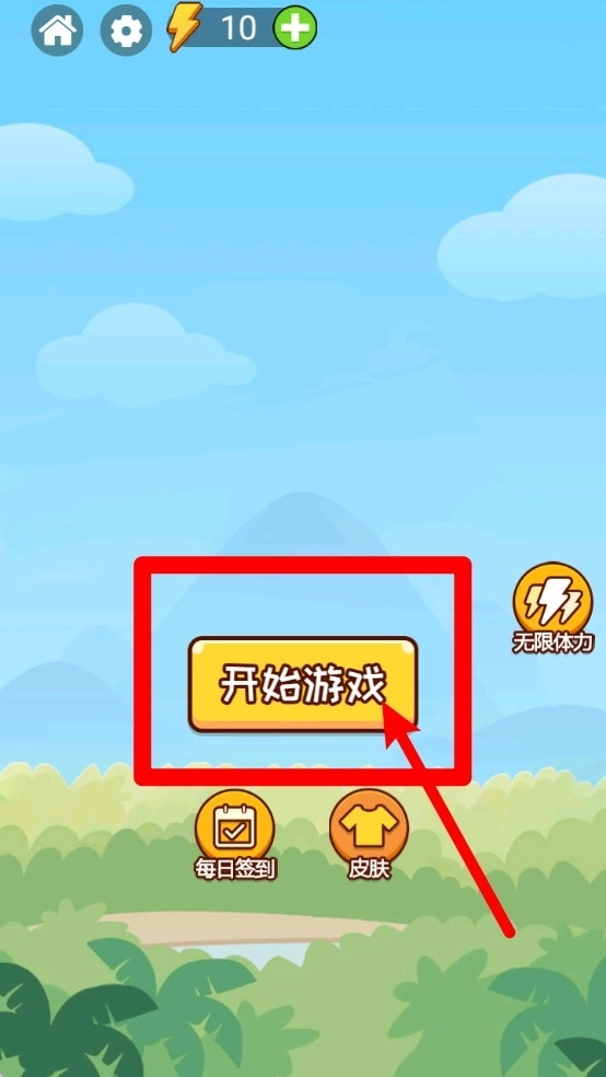 1.进入主界面后,点击“开始游戏”就能启动游戏进程,界面左上角显示设置选项与体力数值,下方区域支持每日签到和皮肤解锁操作,建议在开始游戏前完成相关配置。