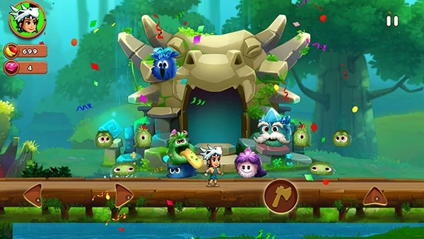 《丛林探险4》(JungleAdventures4)邀你追随阿杜和伙伴们的足迹,在成功拯救村庄后,开启一段崭新的丛林冒险之旅。游戏采用卡通清新的美术风格,搭配萌趣的Q版角色形象,全新的故事剧情与贴合场景的背景音乐相互交织,营造出沉浸式的冒险氛围。经典的操作模式中融入了前进后退、跳跃飞行等丰富动作,让冒险过程更添刺激感。 在游戏里,玩家将探索风格百变的地图场景——从冰封的冰河时代遗迹,到雾气弥漫的神秘丛林深处,每一处都藏着未知的挑战。途中不仅要灵活躲避四处出没的昆虫、精准跳过拦路的小鳄鱼,还能借助发射装置提升移动速度、瞄准远处目标;更要巧妙逃离Boss爪牙的追击,深入探索充满野趣的动物园区域。关卡设计丰富多样且难度逐步递增,清除的怪物越多,就能解锁更隐秘的险地。到了后期,玩家还能操控小鸟发起远程攻击、用斧头劈开通往新区域的花丛,挑战与解谜元素相互融合,带来层层递进的游戏乐趣。