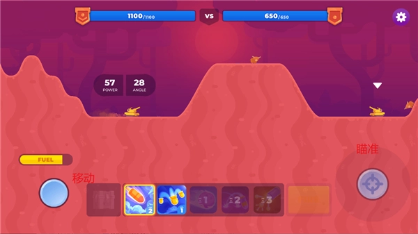 3、点击“开始”进入游戏,左侧用于操控移动,右侧则负责控制瞄准的力度。