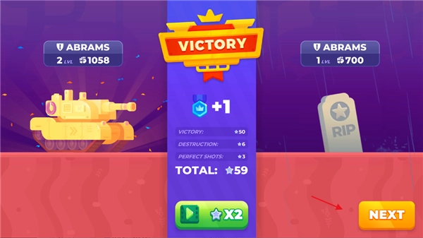 5、最终击败敌方坦克取得胜利后,点击NEXT按钮返回界面;