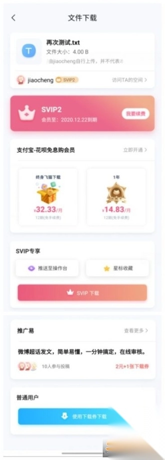 点击飞猫云,在其中找到你要下载的文件。接着,单击此文件,这时会出现相关操作按钮。从中选择下载选项。一般来说,SVIP用户能够即刻下载。而普通用户则可选择开通SVIP进行下载,或者使用下载券来下载。