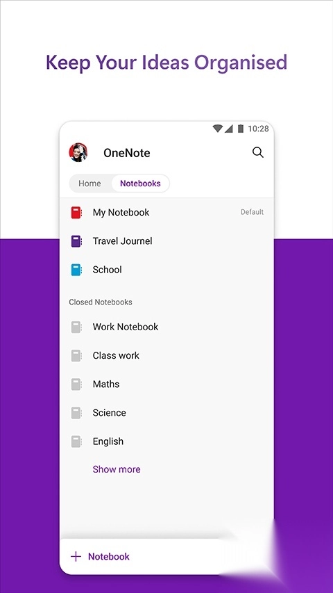 3、安卓手机适用的OneNote,能够打开以Microsoft OneNote 2010格式或更高版本创建的现有笔记本。