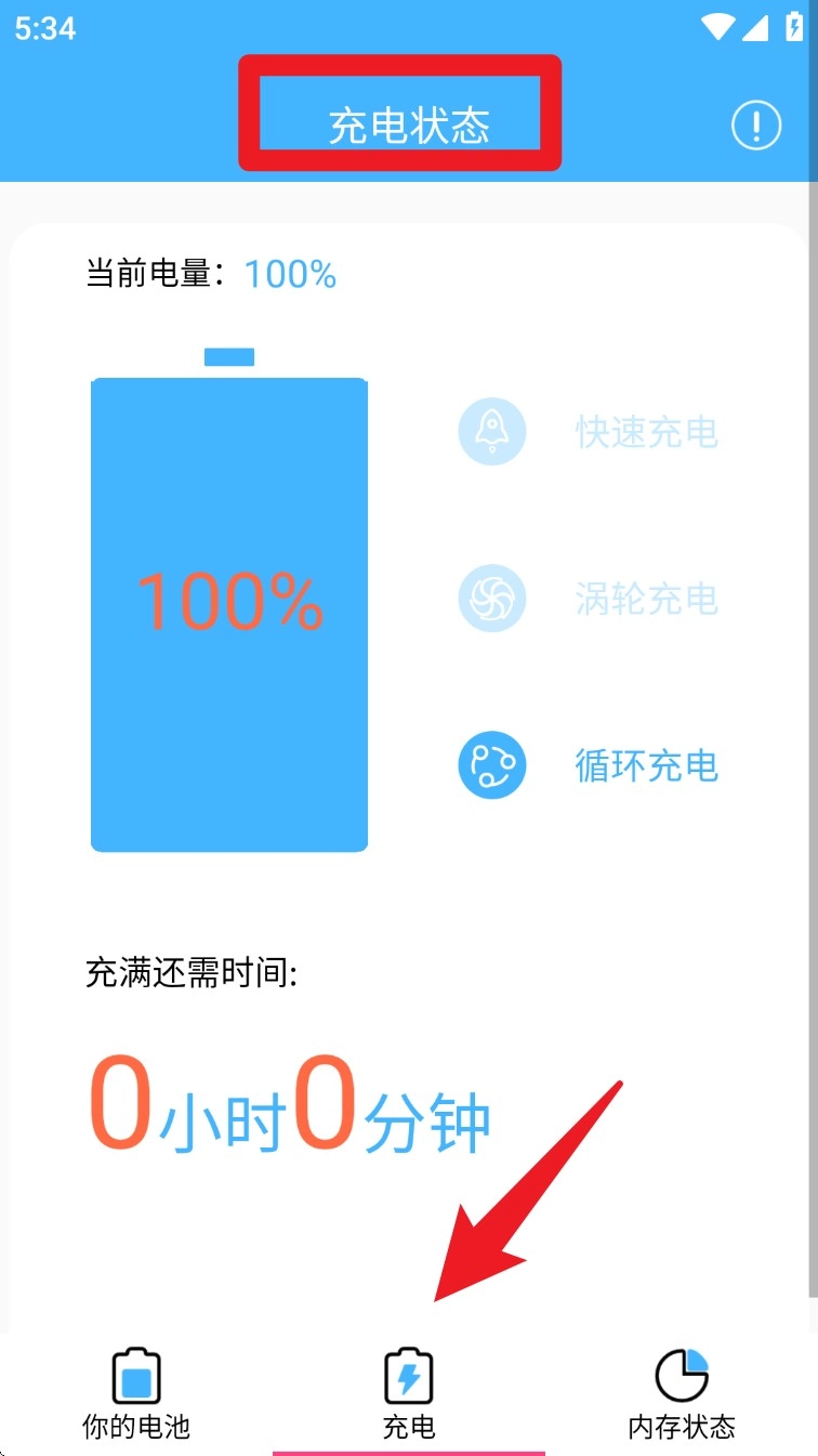 3. 切换至「充电」页面可查看当前电量百分比,并识别充电模式及预计剩余时间。