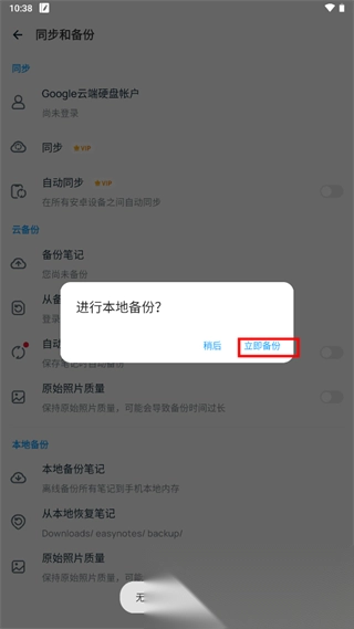 3. 点击“立即备份”。倘若备份失败,需先检查网络,之后重新尝试备份。
