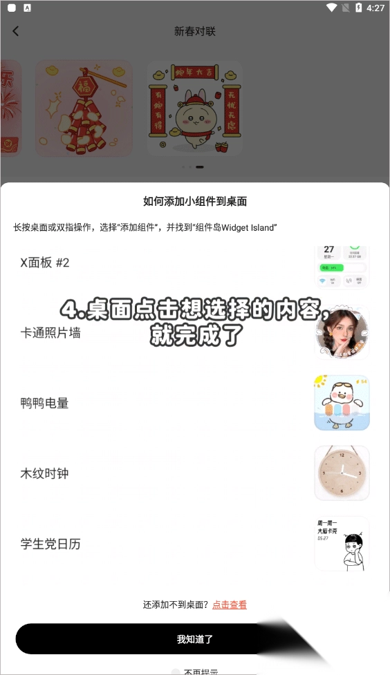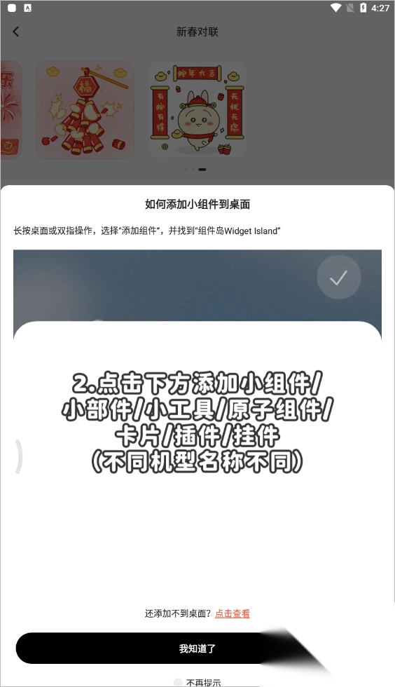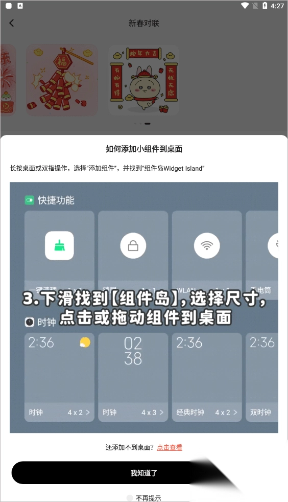 3、选择对应的小组件尺寸,然后点击或拖动小组件到桌面,即可完成桌面安装;