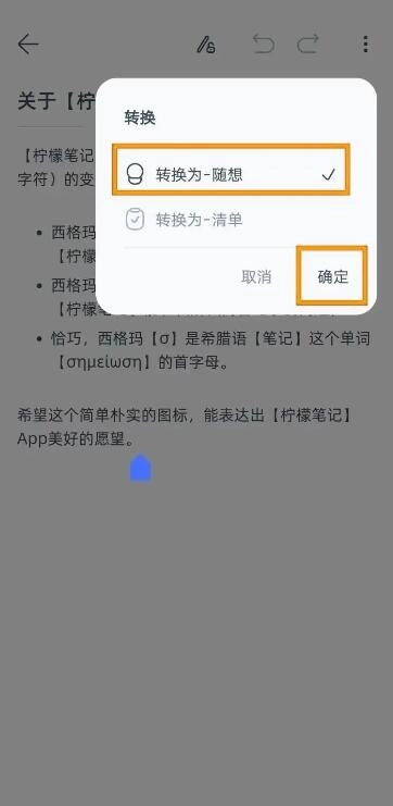 柠檬笔记app怎么把清单转换为随想?