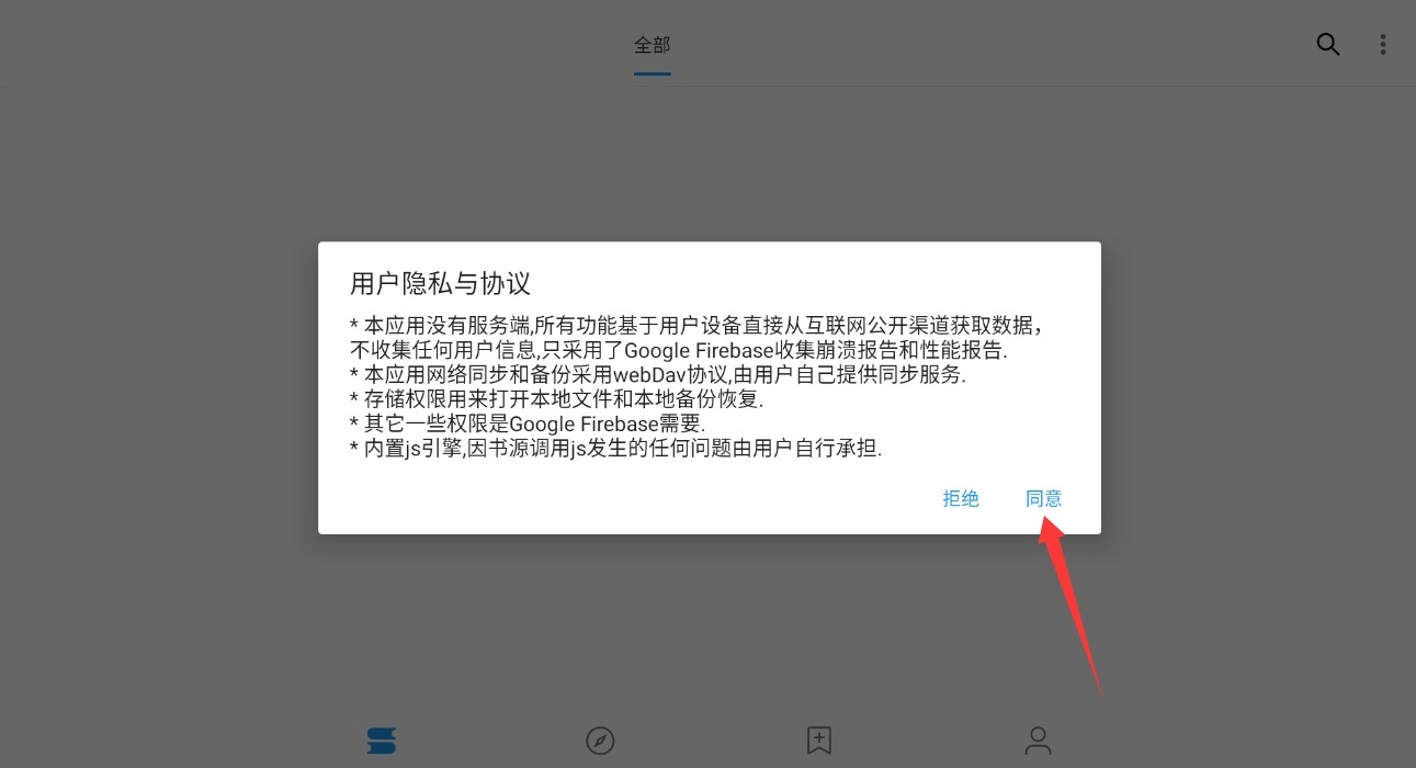 1. 当你打开轩哥阅读APP,系统会向阅读用户提示隐私协议,只有点击同意按钮,才能正常使用各项功能。