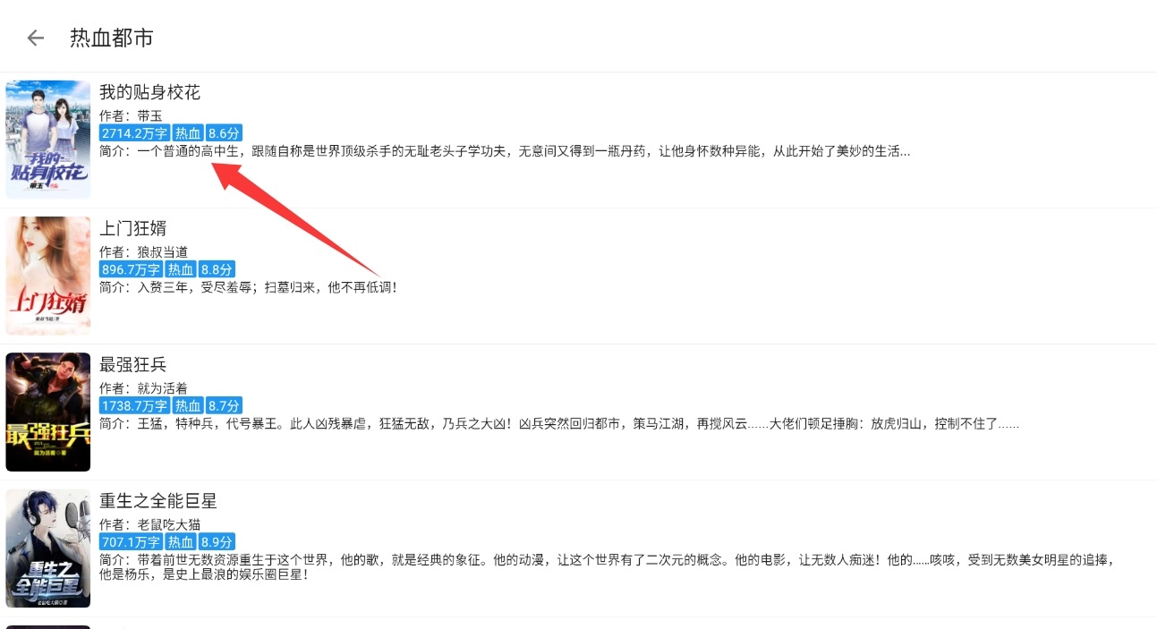 2、在书城或搜索页面找到你想看的小说,点击小说封面或标题进入详情页面。