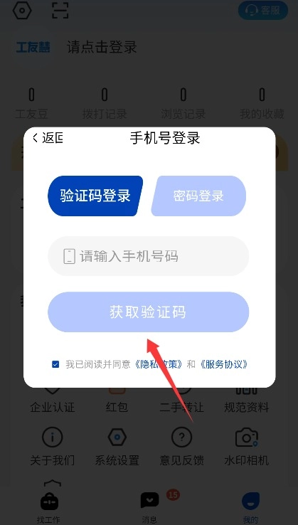 2、使用手机号接收验证码快捷登录,或直接输入账号密码完成身份验证进入系统。
