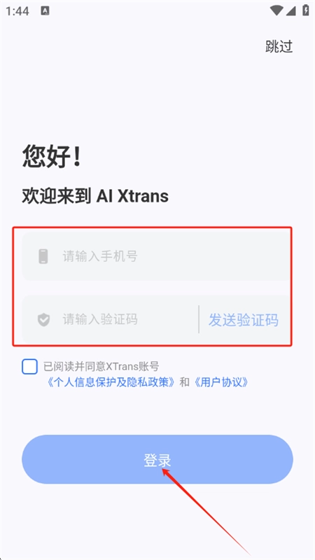 2. 点击同意《用户协议》与《隐私政策》后进入。