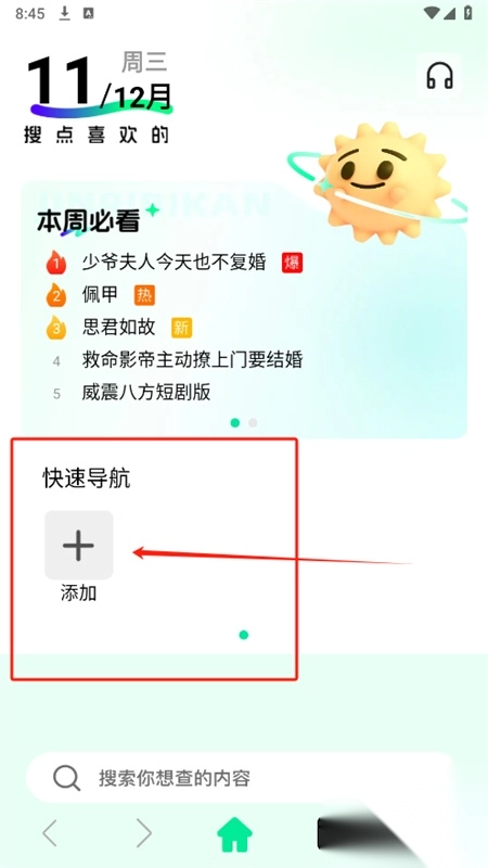 4、在首页点击添加,还可以添加自己常用的网址,能够一键直达