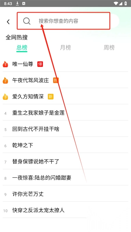 2、打开软件进入主页,在搜索框输入你想要查找的内容,可以快速直达