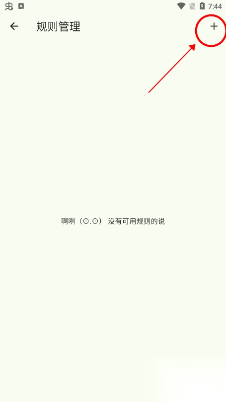 3、在规则管理页面,点击右上角“+”;