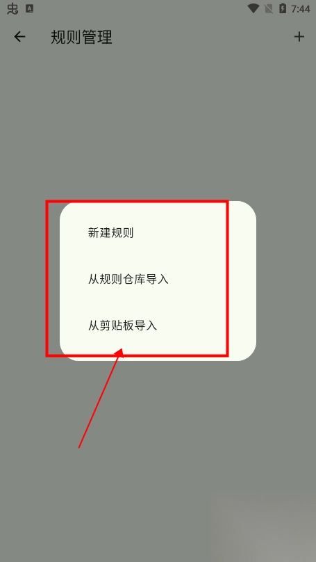 4、在弹出来的页面,选择您添加方式:新加规则、从规则仓库导入、从剪粘板导入;