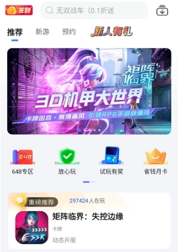 天宇游戏折扣平台,这是一款备受瞩目的手游盒子软件。它犹如一座游戏宝库,汇聚了海量热门且正版的游戏资源,堪称手游下载的绝佳之地。在这里,每一天你都能毫不费力地领取到琳琅满目的游戏折扣福利。无论你对哪一款游戏情有独钟,这个平台都能满足你的需求,各类游戏应有尽有。不仅如此,它还为你提供抢先体验内测游戏的机会。更值得一提的是,新用户只要完成注册,就能领取数额可观的红包!