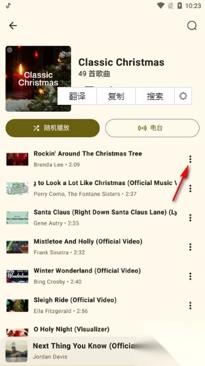 1.进入播放列表中,点击歌曲右侧的三点图标;