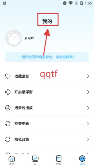 打开你的AI优变声器,点击我的,前往个人中心。