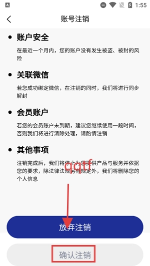 在账号注销界面点击确认注销,根据提示完成注销。