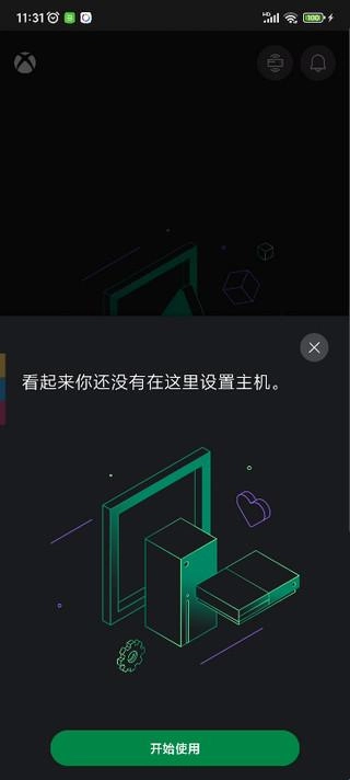 2、接着在“我的库”中,会出现你玩Xbox游戏时自动上传的诸如成就截图等内容。不过此时尚未绑定主机,点击“开始使用”来设置主机。