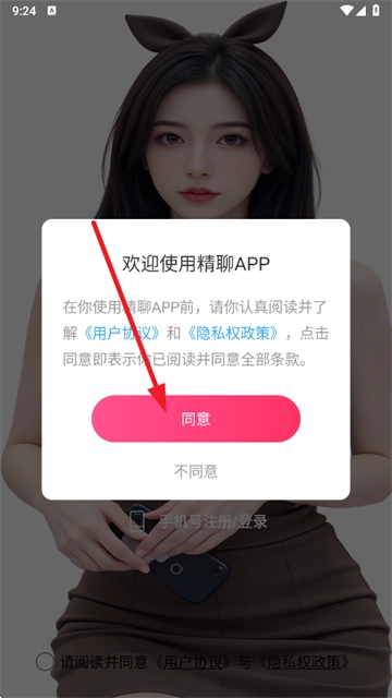 4、输入手机号和验证码,勾选用户协议和隐私政策