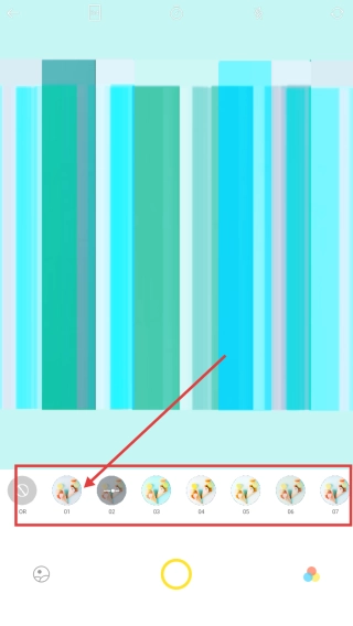 3、滑动底部滤镜栏,选择心仪滤镜如f0等 ,应用到拍摄内容,调整画面风格,点击选择类型。