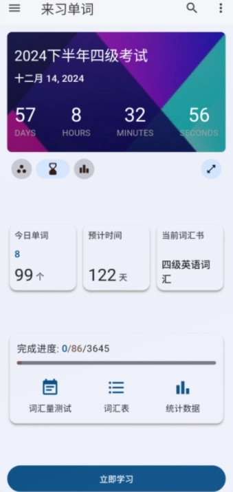 来习单词App,一款助力科学背单词的优质软件。其拥有海量丰富的单词本,无论是大学四六级、考研英语,还是专四专八、GRE、SAT等各类考试所需词汇书,都一应俱全。不仅如此,单词类型极为丰富,能满足不同用户的学习需求。在这里,大家每天都可打卡学习背单词,有效巩固记忆,让单词记得更扎实。别再犹豫,赶快下载体验吧!