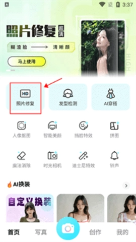 3.使用其照片修复功能,修复或者美化自己的照片。
