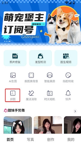 1、打开相机秀秀APP,在首页点击【拼图】功能