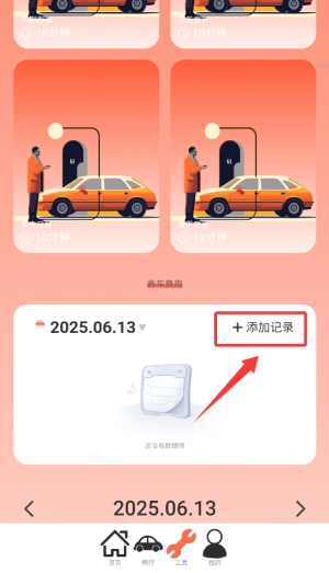 2、点击"添加记录"按钮,进入充电费用登记页面准备填写相关信息。