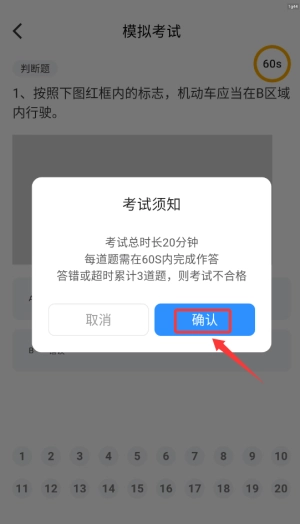 2、点击"模拟考试"按钮,系统将自动生成一套完整的科目一仿真试题供用户作答。