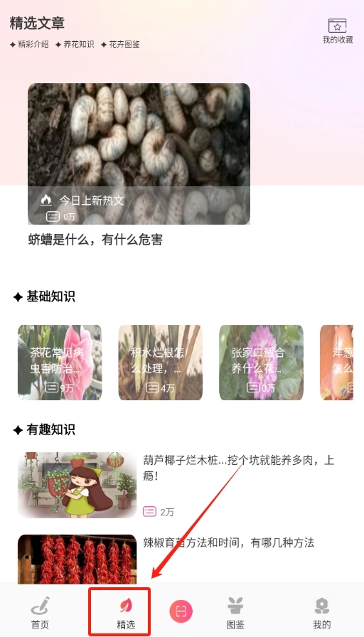 2、点进精选页面,这里有植物的基础知识,还有不少有趣知识,带你深入了解植物。