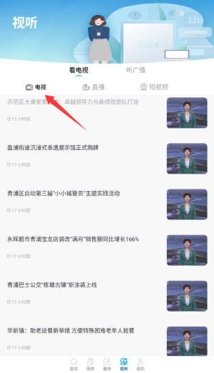 1. 打开绿色青浦APP,在首页的导航栏中选中“视听频道”,该频道集合了各类本地视频新闻报道。