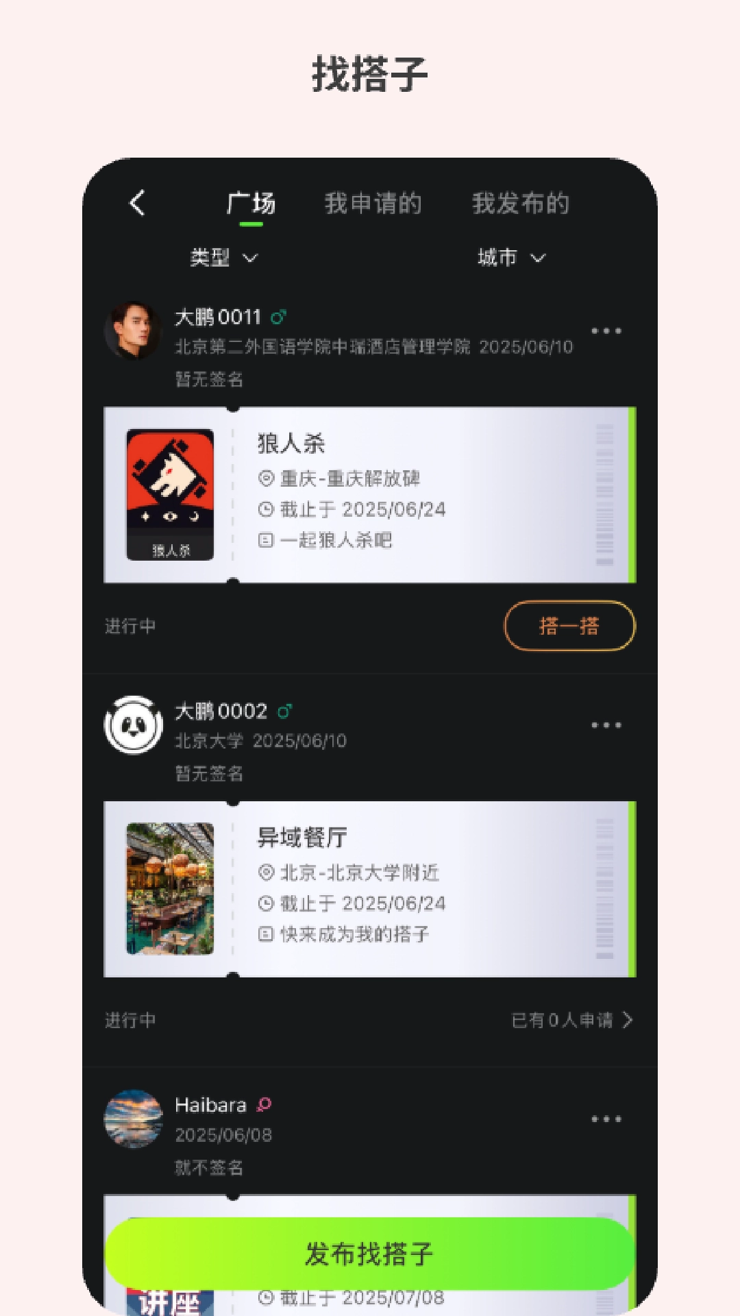 2、不管是寻觅学习伙伴、组队开展项目,亦或是纯粹记录个人的大学生活,“搭搭校园”都可充当你的得力助手。
