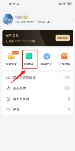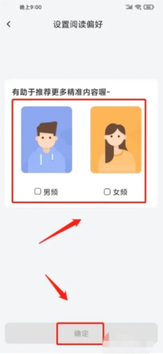 3、进入设置中的阅读偏好选项,挑选偏好类型,点击【确定】按钮。
