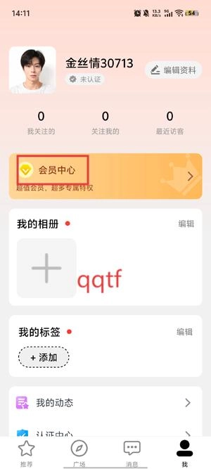 打开你的金丝情App在个人中心点击会员功能。