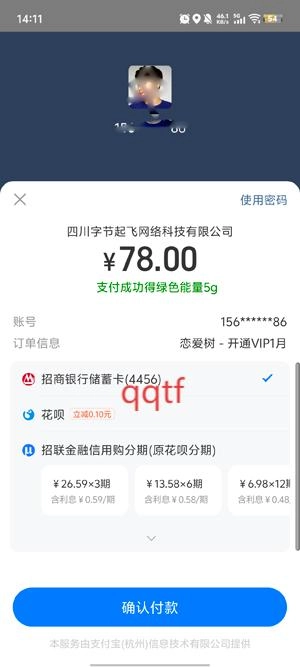 在支付界面点击并确认支付,成功开通会员。