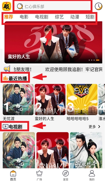 在本站下载、安装并打开顾我追剧app,进入后,你既可以直接进行搜索,也能在推荐页面寻觅自己想看的影视作品。
