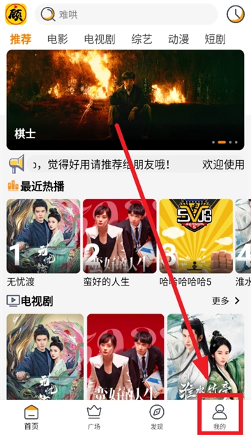 打开顾我追剧app进入首页后点击我的