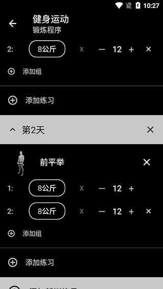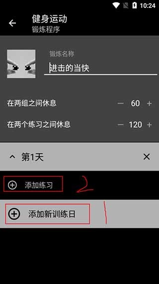 先点击添加新训练日,然后点击添加练习。
