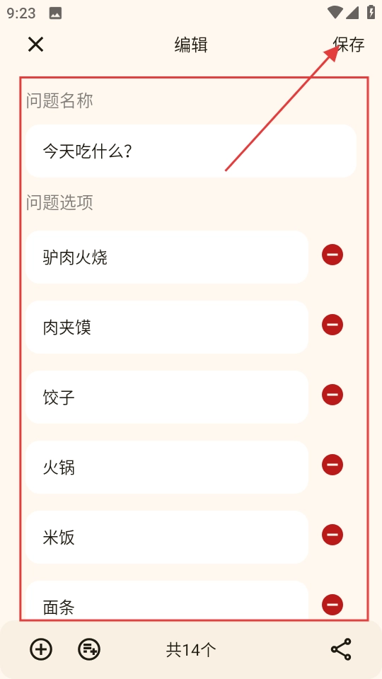 3、于编辑页面,设定好问题名称与选项后,点击保存按钮。