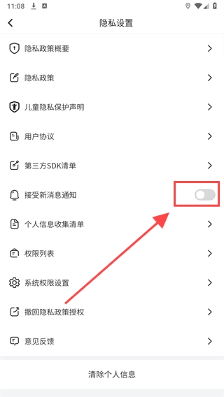 3、点击新消息通知后面的【开关】按钮,选择接受就可以了。