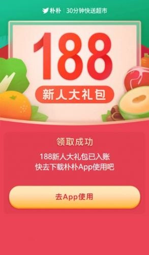 1朴朴超市全新升级啦!为您送上188元新人福利,新用户还能专享1元新人礼包哦。