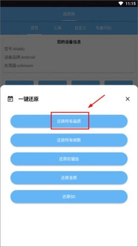4、若要还原画质,仅需点击下方的还原按钮,并选择还原画质。