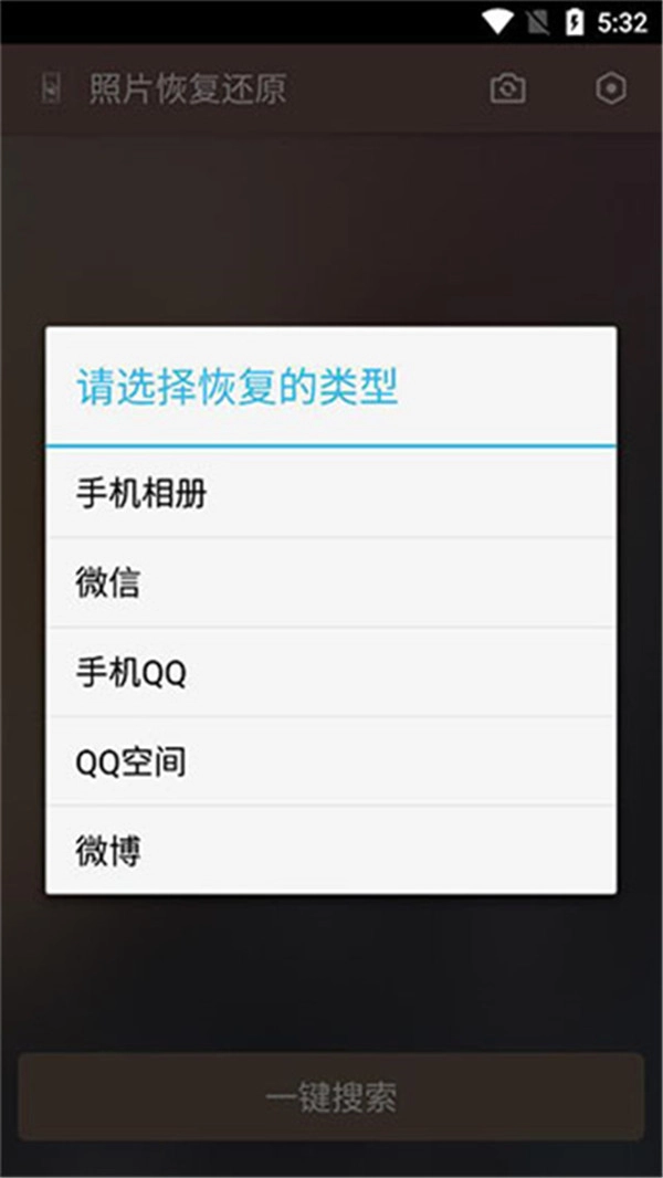 1. 在主页面,点击一键搜索按钮。