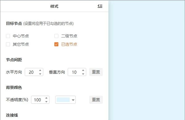 6、借助左侧的“样式”面板,能够对连接线颜色、边框粗细以及背景颜色等视觉效果进行调整。
