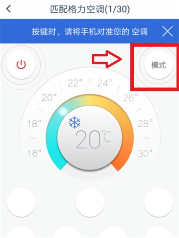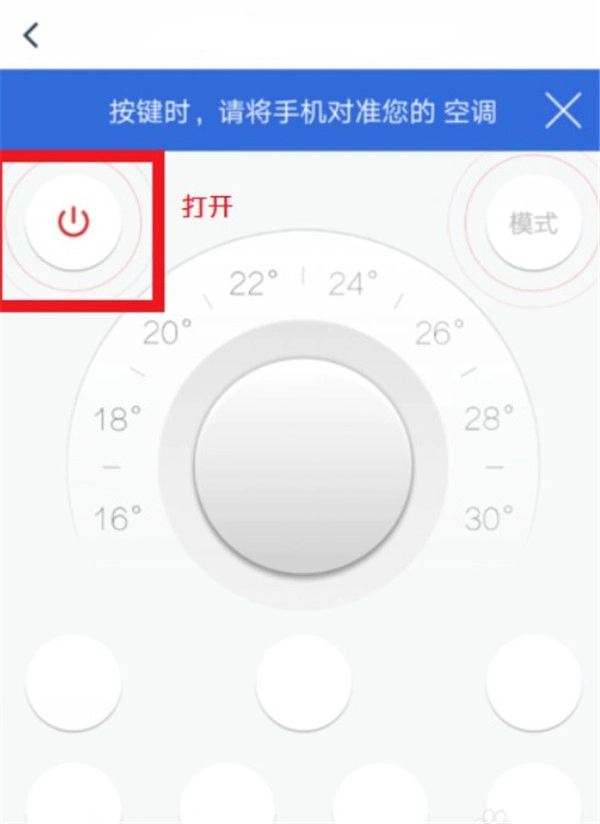 3、手持设备,靠近空调并对准,点按左侧圈钮中的红标,就能实现开启或关闭操作。